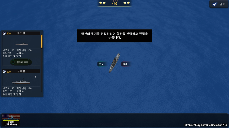 또한 어떤 구역은 조선소가 지어져있어 배 정비나 건조가 가능한데요. 여기서 배를 회복시키거나 포탑 무장을 바꾸거나 새로운 함선을 생산할 수 있습니다. 전함>항공모함>순양함>잠수함=구축함>호위함 순으로 비쌉니다.