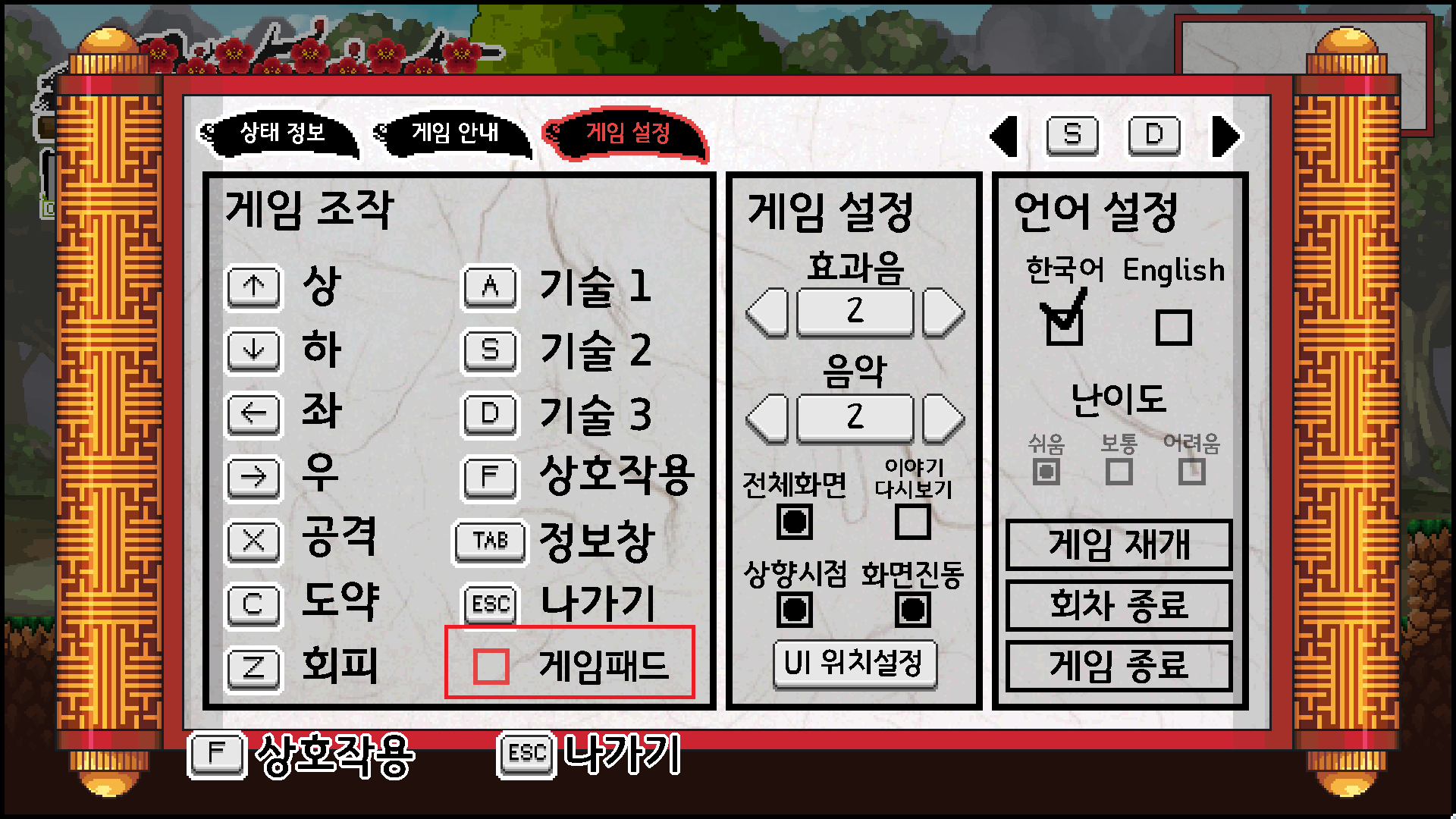 - 이전엔 게임패드 연결이 없을 경우 키보드 UI를, 게임패드 연결이 식별되면 게임패드 UI를 출력했지만, 이제 키보드와 게임패드 UI 우선순위를 선택할 수 있도록 옵션을 추가했습니다.