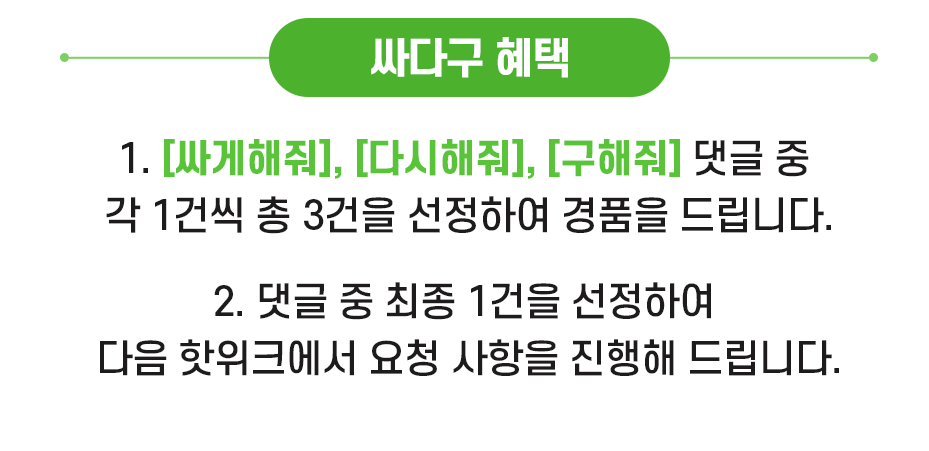 내용을 찾아보니.. 싸게해줘, 다시해줘, 구해줘 3건 중에 하나만 해주는 거였네요..