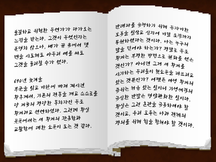 이번에 특히 고민이 컸던 단어는 작중 등장하는 여성 황제의 이름인 '무조(원문은 Wu Zetian)'였습니다.